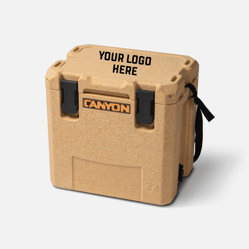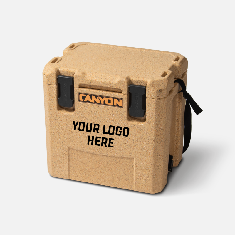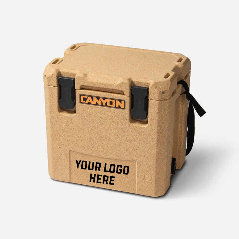 We can customize most of our products, but the Outfitter 22 V2 cooler is our most popular customized product, since it is the perfect size for team giveaways, promotional events, client gifts, and employee gear. Designed to last a lifetime, it delivers all the rugged performance Canyon Coolers are known for - now with your brand logo featured.