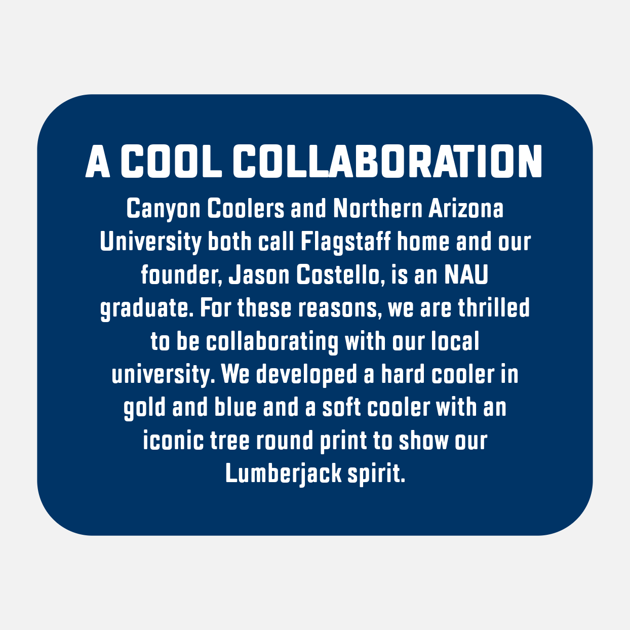 Northern Arizona University meets Canyon Coolers in this limited edition collaboration. The Coulee Backpack Cooler is the perfect size for a hike up to Humphrey's Peak, paddleboarding on the lake, or a sunny lunch picnic on campus. Support a local Flagstaff business and take a piece of your favorite mountain town with you on the go, while keeping The Good Stuff cold.
