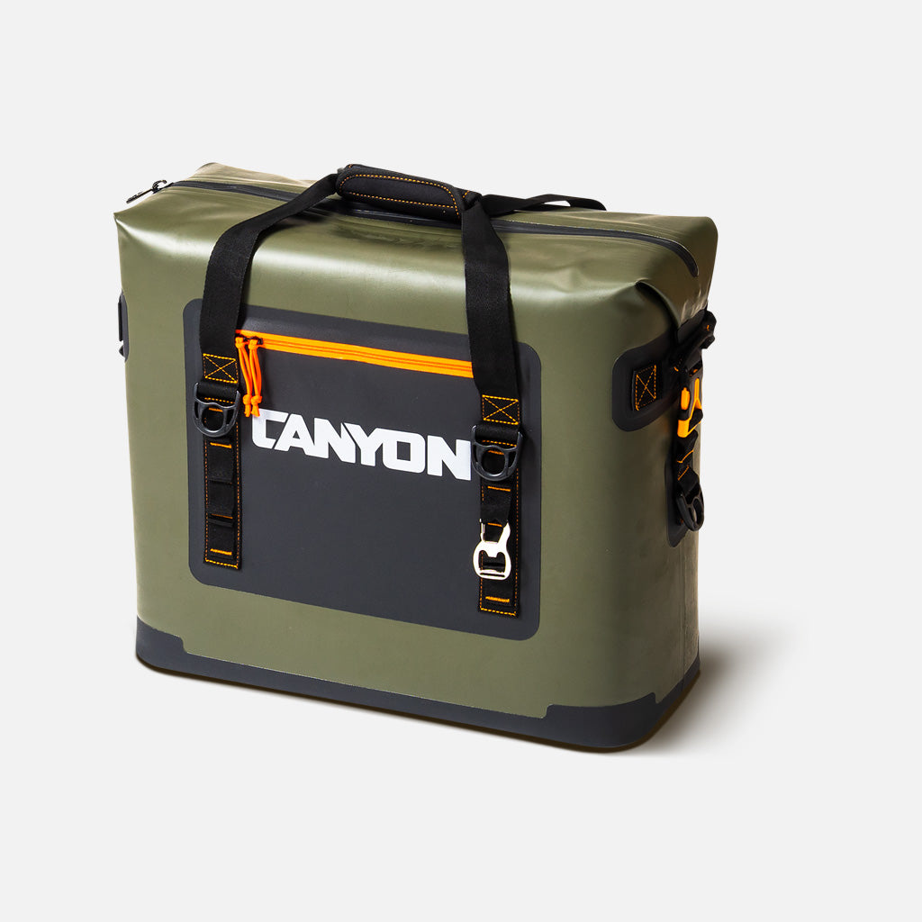 The biggest of our soft coolers, the Nomad 30, is built like a beast. Massive insulation, tough denier waterproof shell built in. It comes with a shoulder strap, molle tie down points, and a water-poof zipper. It even comes with a silicone lubricant to keep your zipper smooth and happy. The cooler will also float with its abundant insulation.